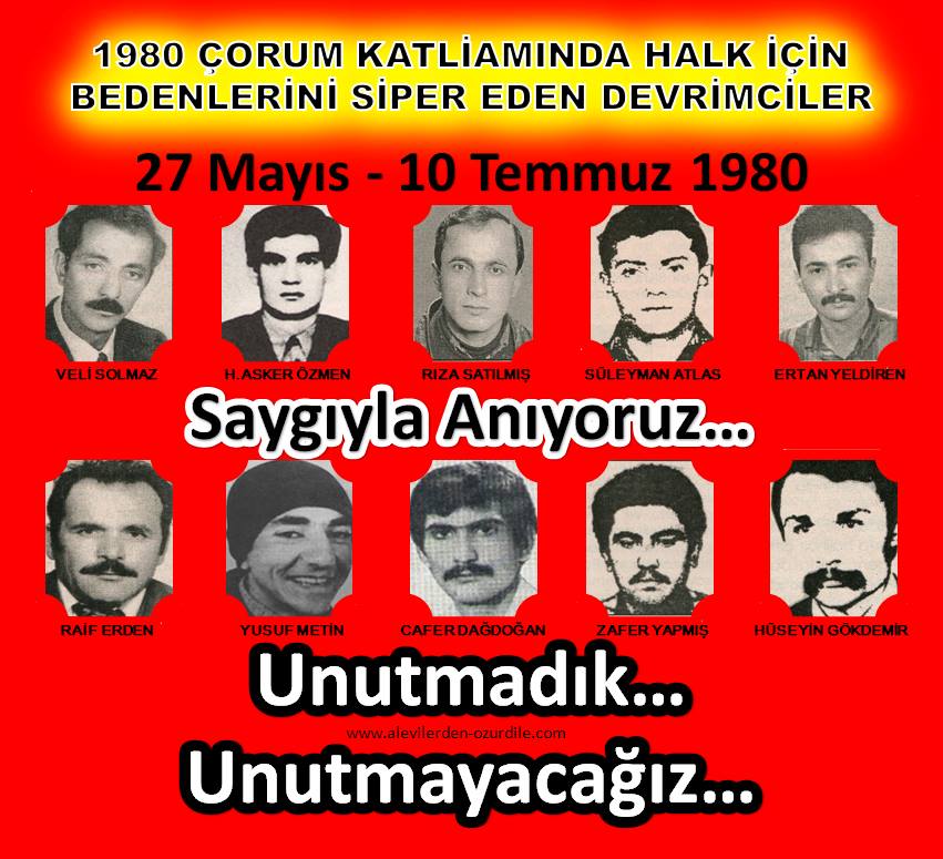 Çorum katliamı, ülke genelinde işlenen siyasal cinayetlerden, okul işgallerinden, Malatya, Kahramanma..