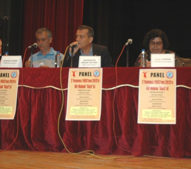 <..Adana Alevi Platformu, Sivas Olaylarının 20. yılı dolayısıyla "2 Temmuz 1993'ten Bir Hukuk Gezisi" başlıklı panel dü..